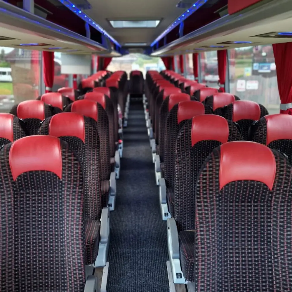 The Medium Coach offers spacious, comfortable seating for up to 45 passengers, making it ideal for tours, events, and corporate travel. Its modern amenities, smooth ride quality, and reliable performance ensure a pleasant journey for larger groups traveling together.
